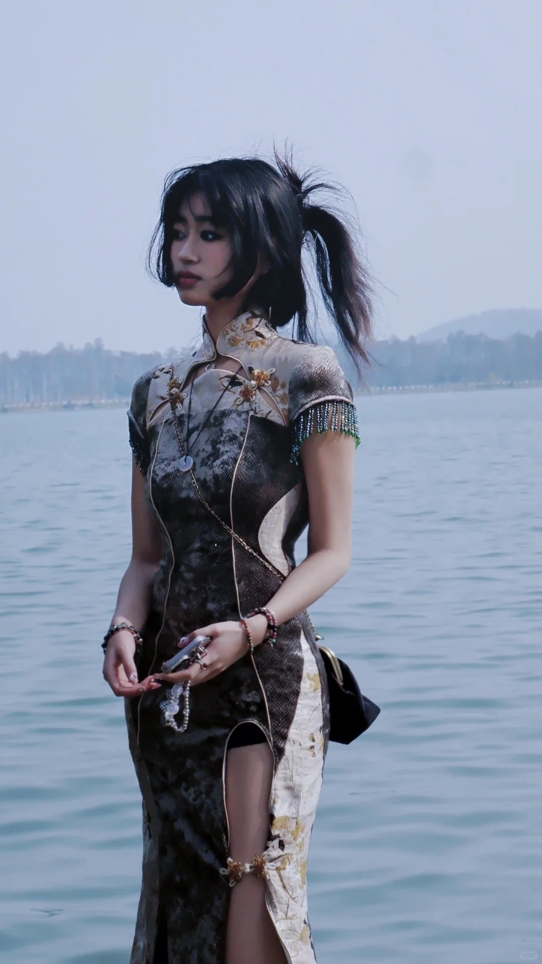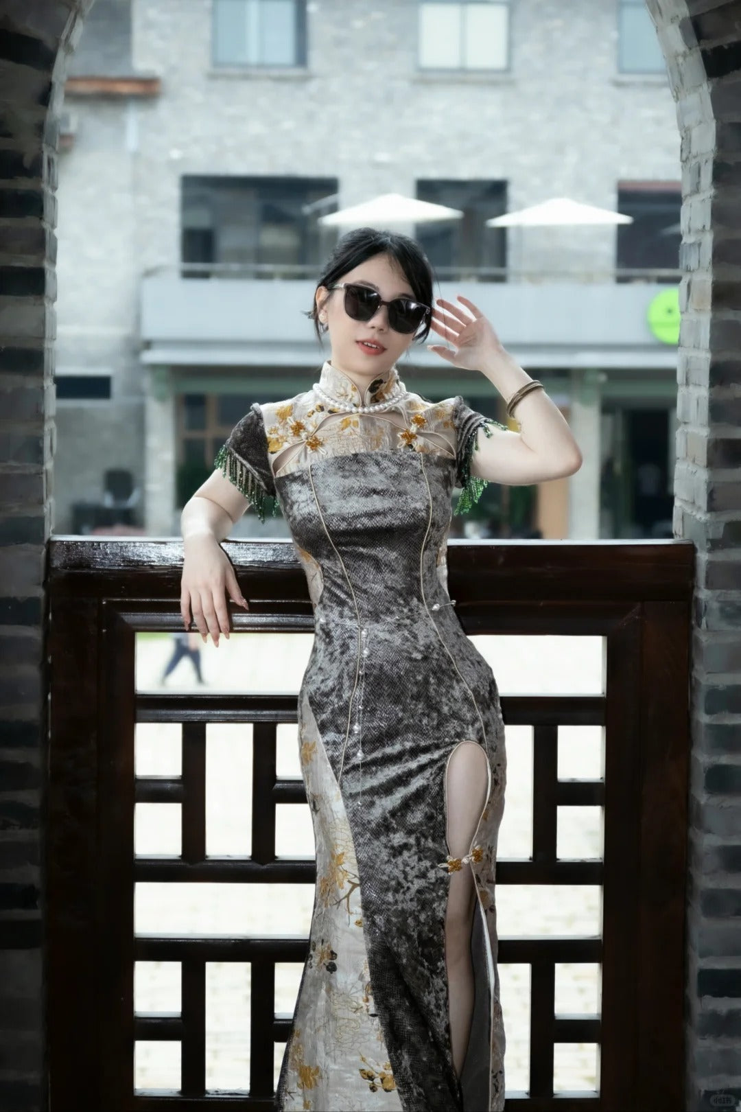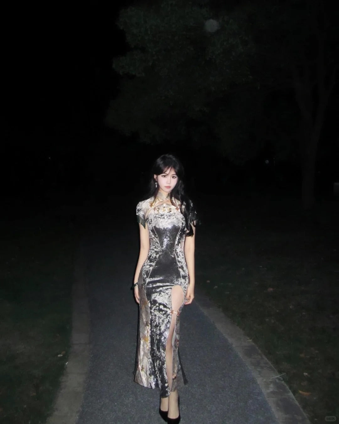 Produktbeschreibung: Diese exquisite Cheongsam wird aus hochwertigen Samtstoffen von Jacquard und Crystal Snake-Print-Velvet hergestellt, wobei ihr raffiniertes und luxuriöses Gefühl betont wird. Das Design enthält Elemente traditioneller Cheongsam -Kragen mit Picot Edge, um ein delikativeres Aussehen zu erzielen. Der Ausschnitt verfügt über akribisch handgefertigte Perlenkettenschleifen. Die lange Silhouette zeigt die weibliche Figur elegant, während der Fischschwanzsaum einen Hauch von Vintage -Charme verleiht. Ein hochschlitzes Design verbessert Bewegung und Atmungsaktivität und enthüllt die Beinkonturen wunderschön. Die Ärmel haben einen einzigartig gekrümmten Umriss, der die Oberarme effektiv verbirgt. Mit polygonaler Kristallperlenverkleidung verziert dieses Kleid mit jeder Bewegung Anmut und Raffinesse.
