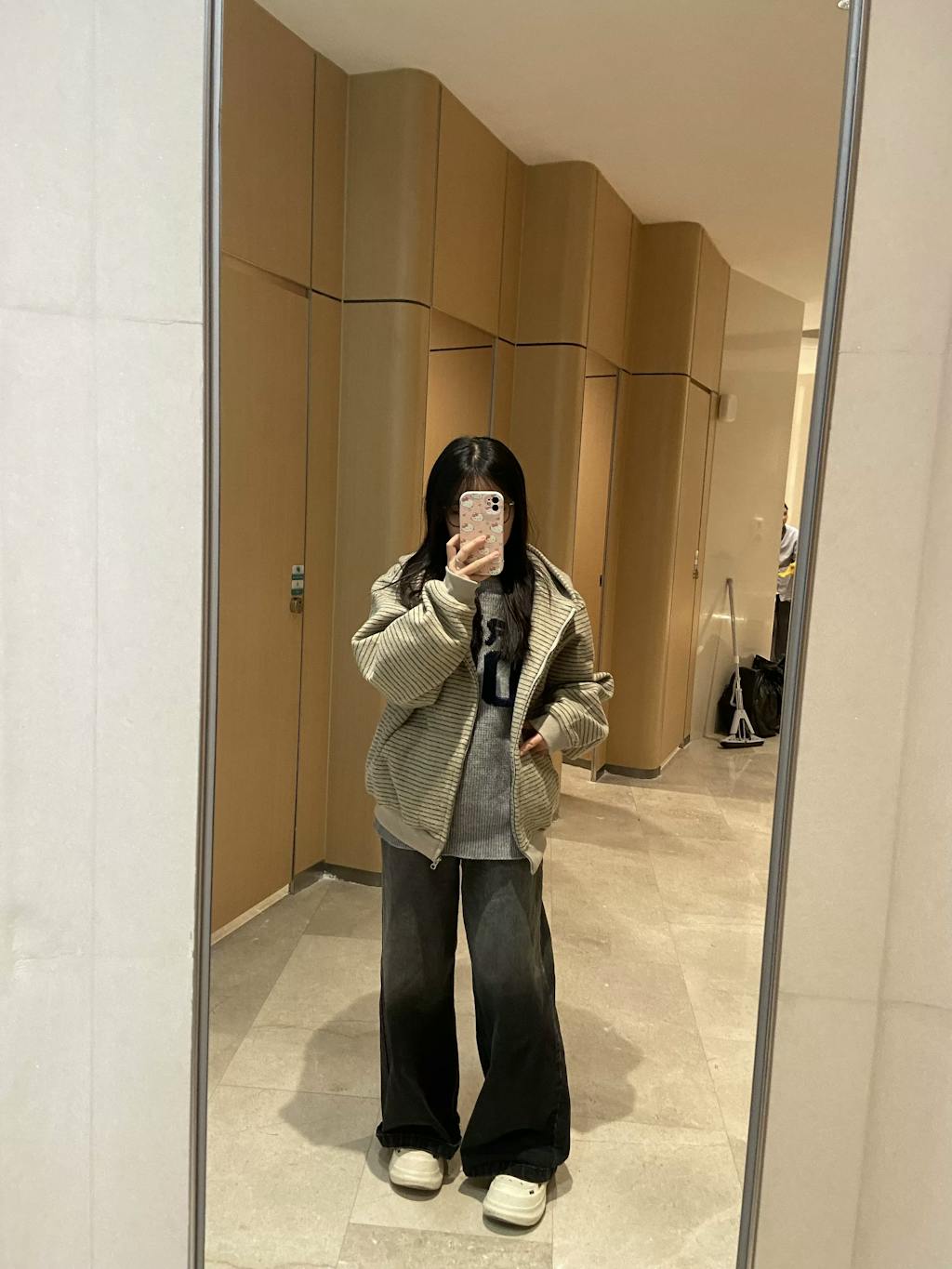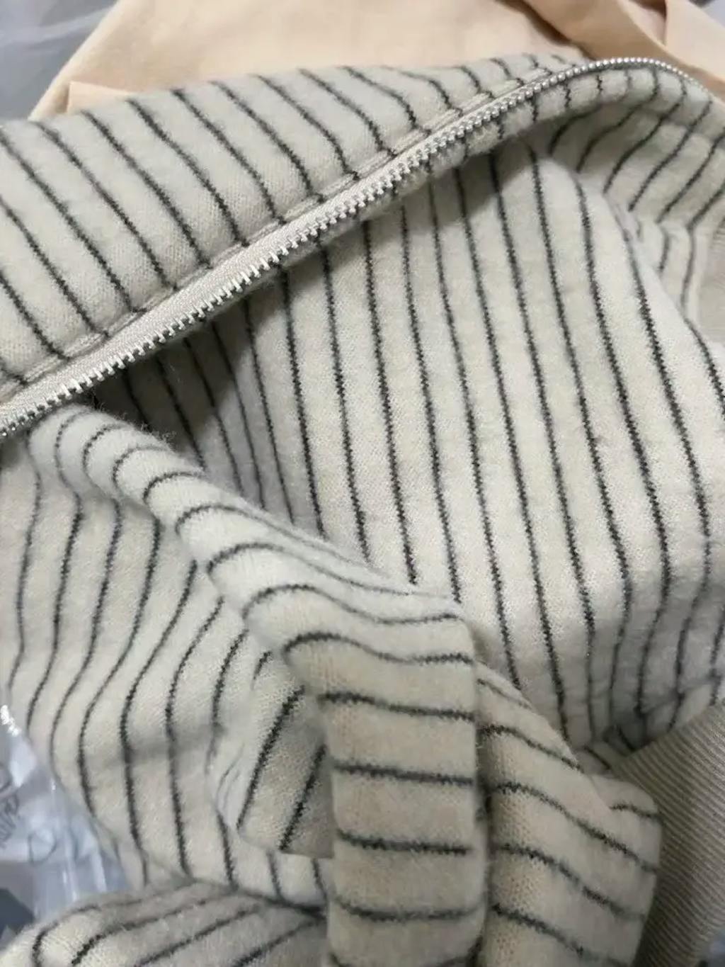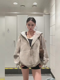 This cozy zip-up hoodie features a subtle striped pattern and an oversized silhouette, perfect for relaxed autumn streetwear. Designed with a roomy hood and long sleeves, it offers warmth and comfort for everyday outings. The soft fabric and neutral tones make it easy to layer, while the unisex style suits a wide range of looks.