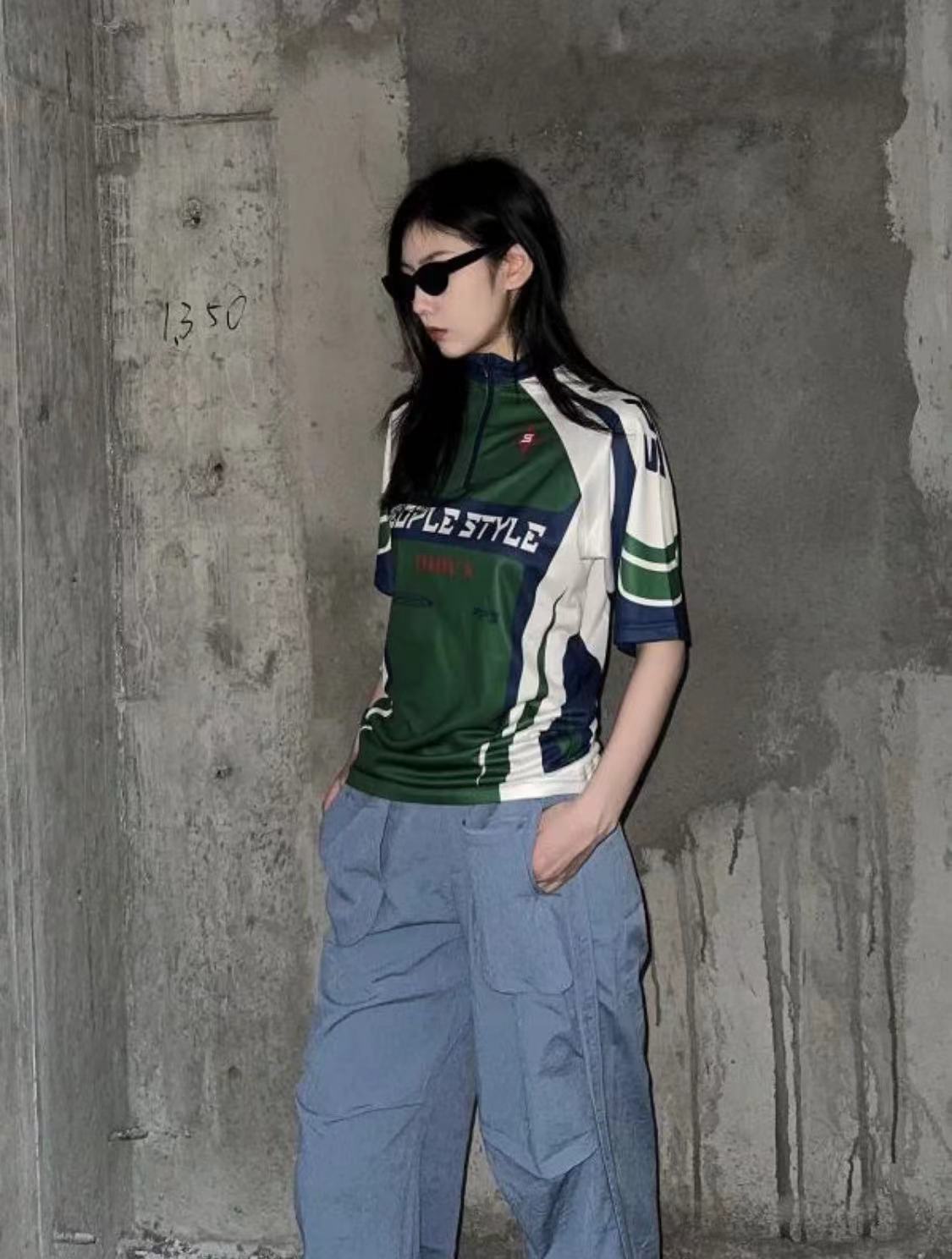 Styling -Tipps: Diese vielseitigen Spitzen können mit einer Vielzahl von Bottoms für verschiedene Looks kombiniert werden. Wie in den Bildern gezeigt, sehen sie mit Weitbeinhosen für ein trendiges, retro-inspiriertes Outfit großartig aus. Der hohe Hals und die sitzende Silhouette machen sie perfekt zum Schichten unter Jacken oder zum Tragen von selbst. Das kühne Logo-Design verleiht eine sportliche Note, wodurch diese Tops sowohl für lässige Ausflüge als auch für sportlich inspirierte Ensembles geeignet sind.