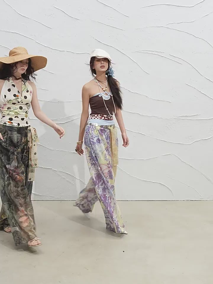 Vintage Floral Velvet Wide Leg Pants