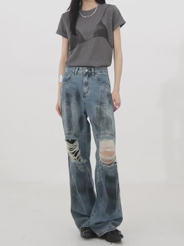 Acabado angustiado y teñido: Enfatizando una apariencia resistente y desgastada, las técnicas angustiantes y de tinte de tierra le dan a estos jeans una sensación vintage auténtica, como si hubieran sido atesoradas y usadas a través de las generaciones.