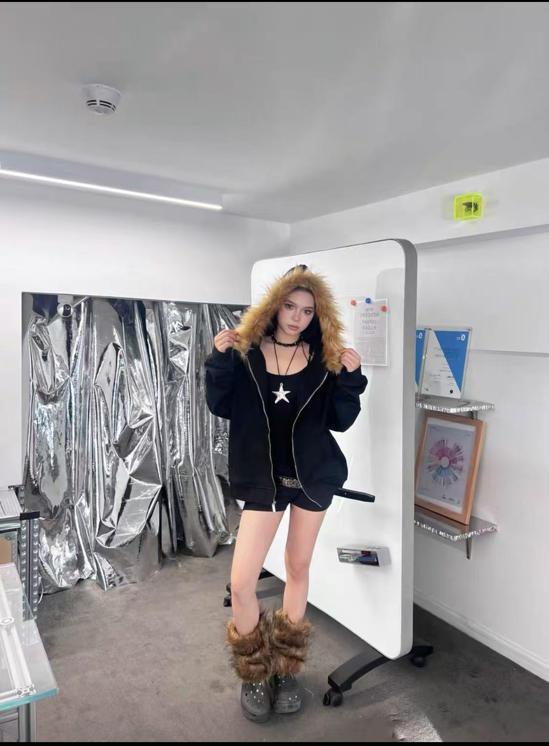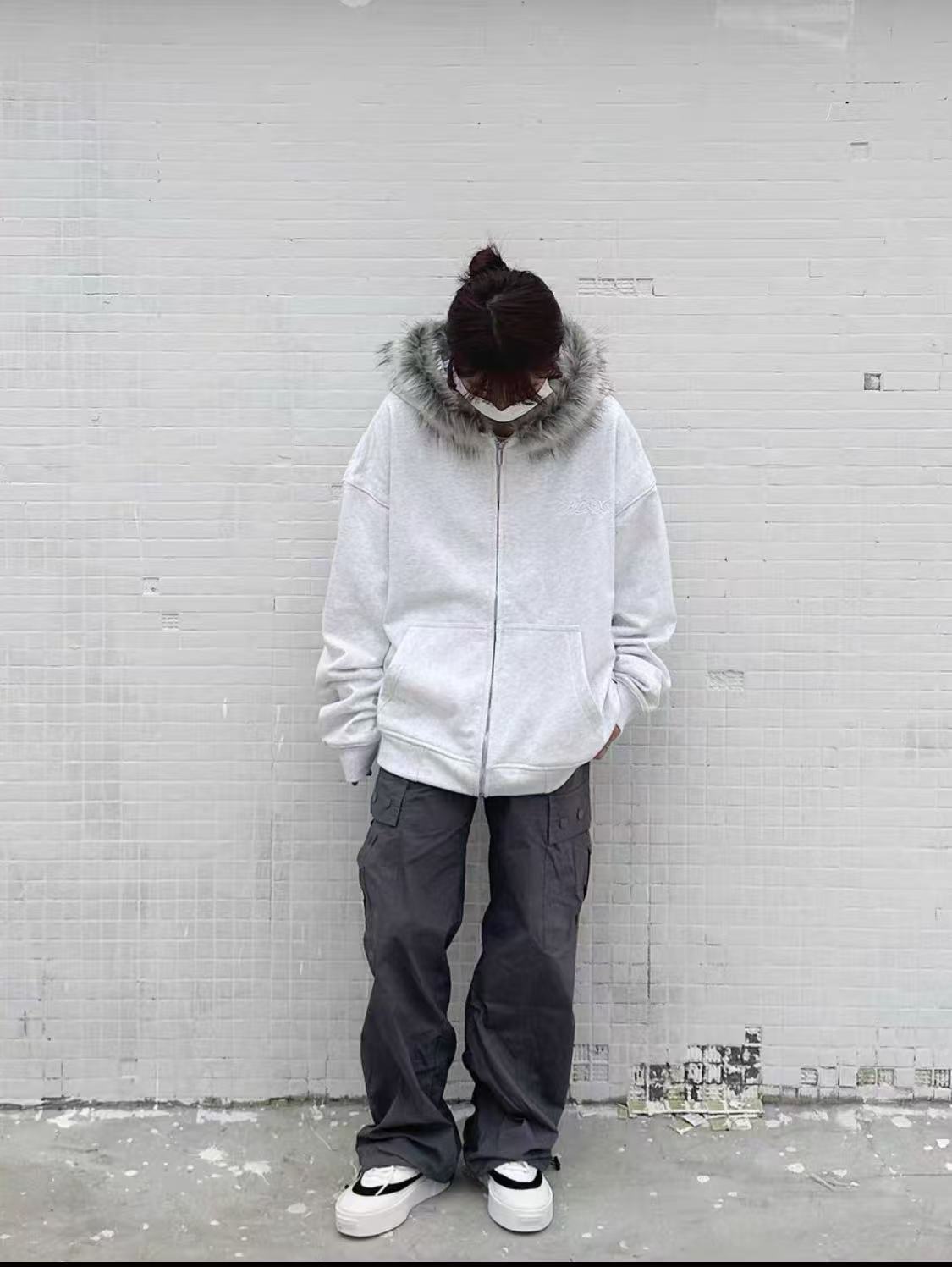Envuelve en calidez y estilo con nuestra acogedora chaqueta de sudadera con capucha de cuello de piel de gran tamaño de gran tamaño. Esta chaqueta cuenta con un collar de lujoso forrado de piel y un accesorio espacioso y de gran tamaño para la máxima comodidad. El conveniente cierre de la cremallera y la tela suave lo hacen perfecto para capas. Manténgase elegante y acogedor durante los meses más fríos con esta pieza imprescindible.