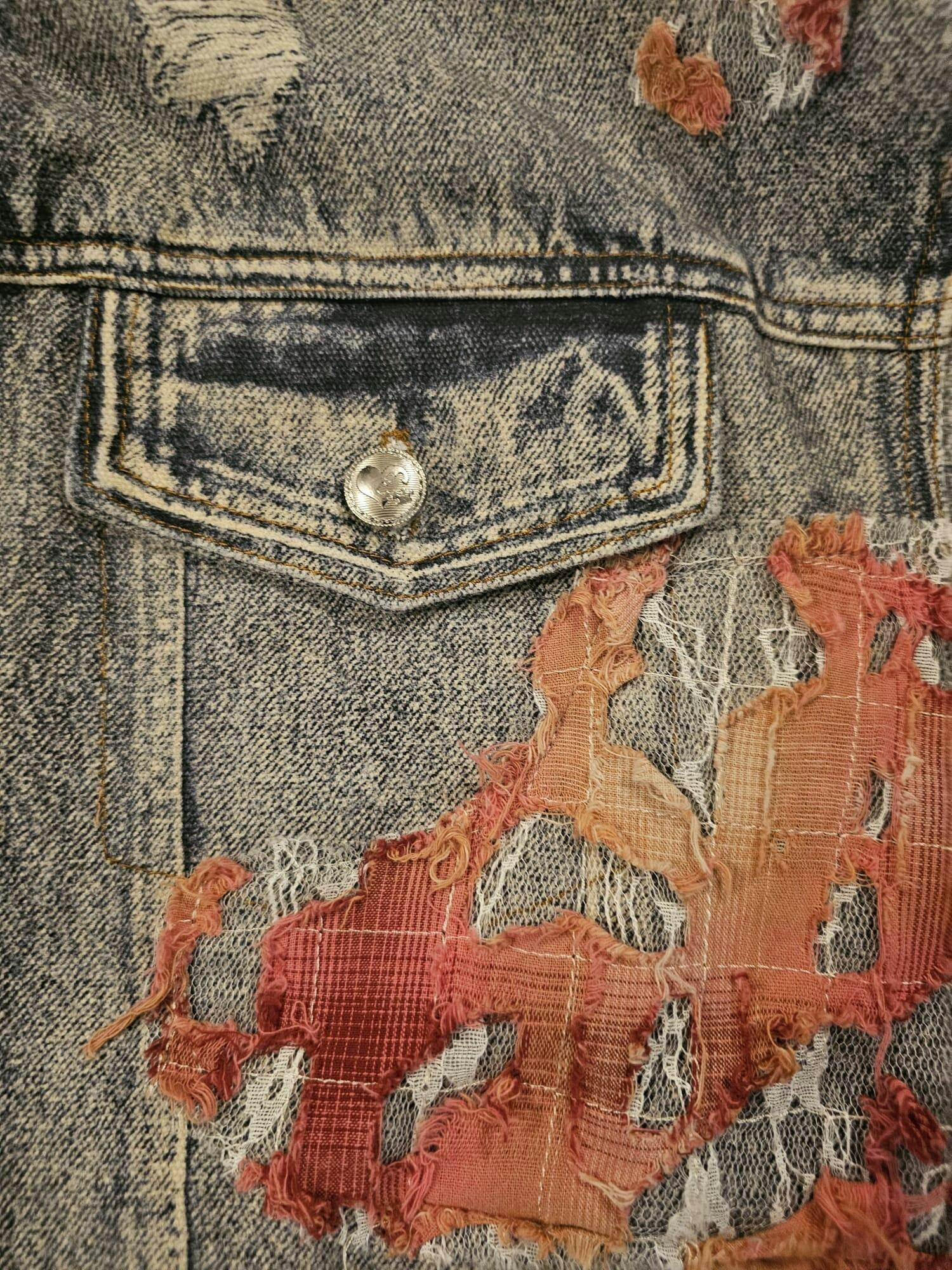 Elegante chaqueta de mezclilla impresa de encaje de encaje de la noche