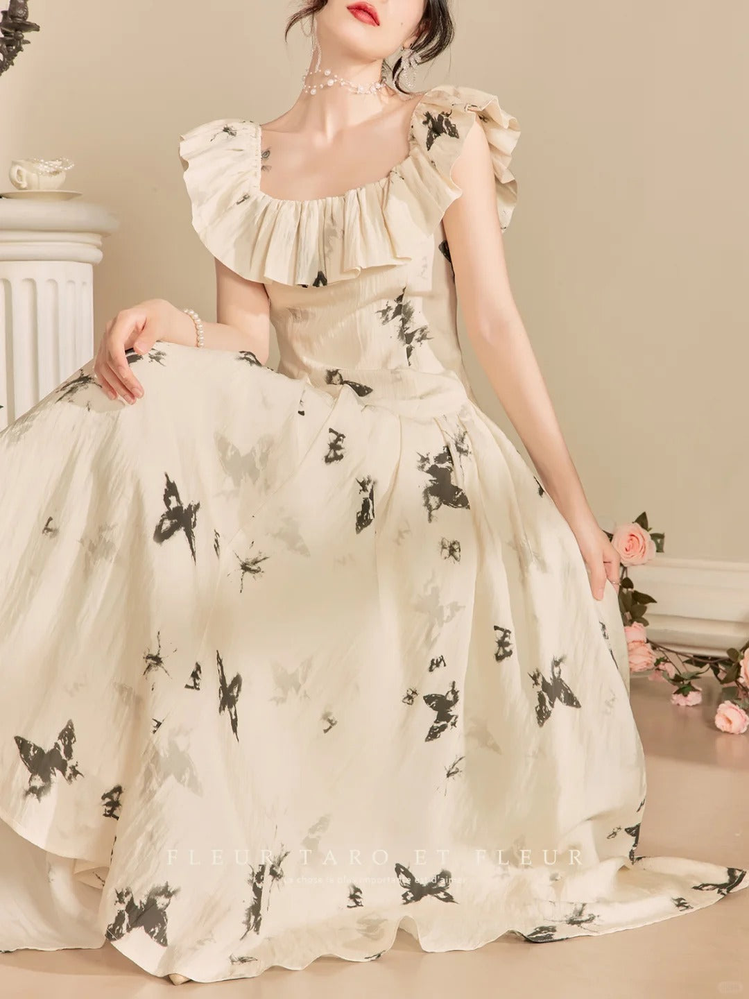 Vestido de hábito de hombro de mariposa de tinta francesa