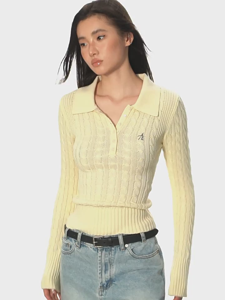 Half-Button Cable Knit Polo Sweater