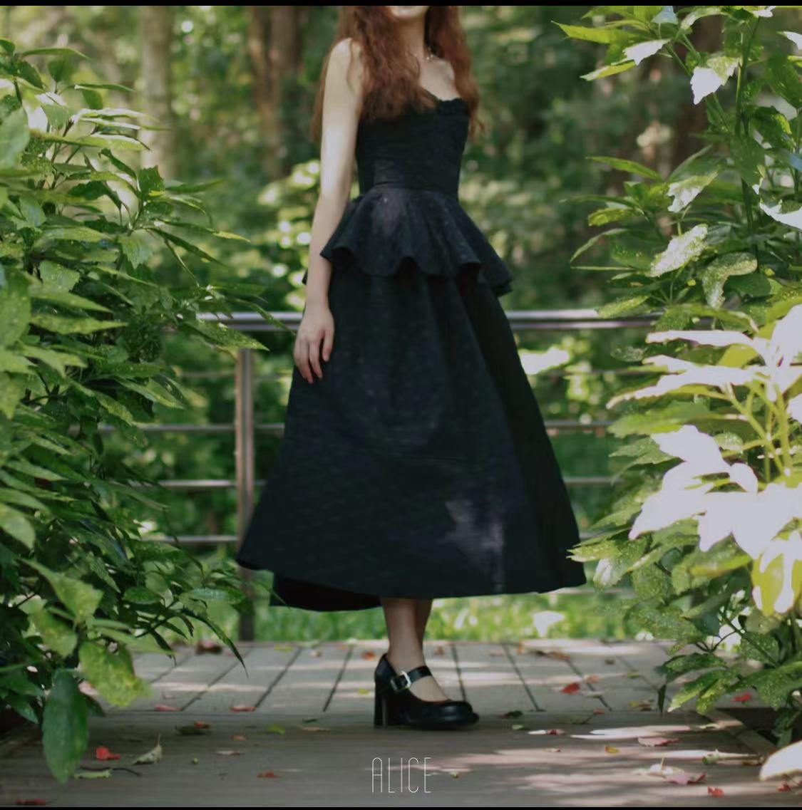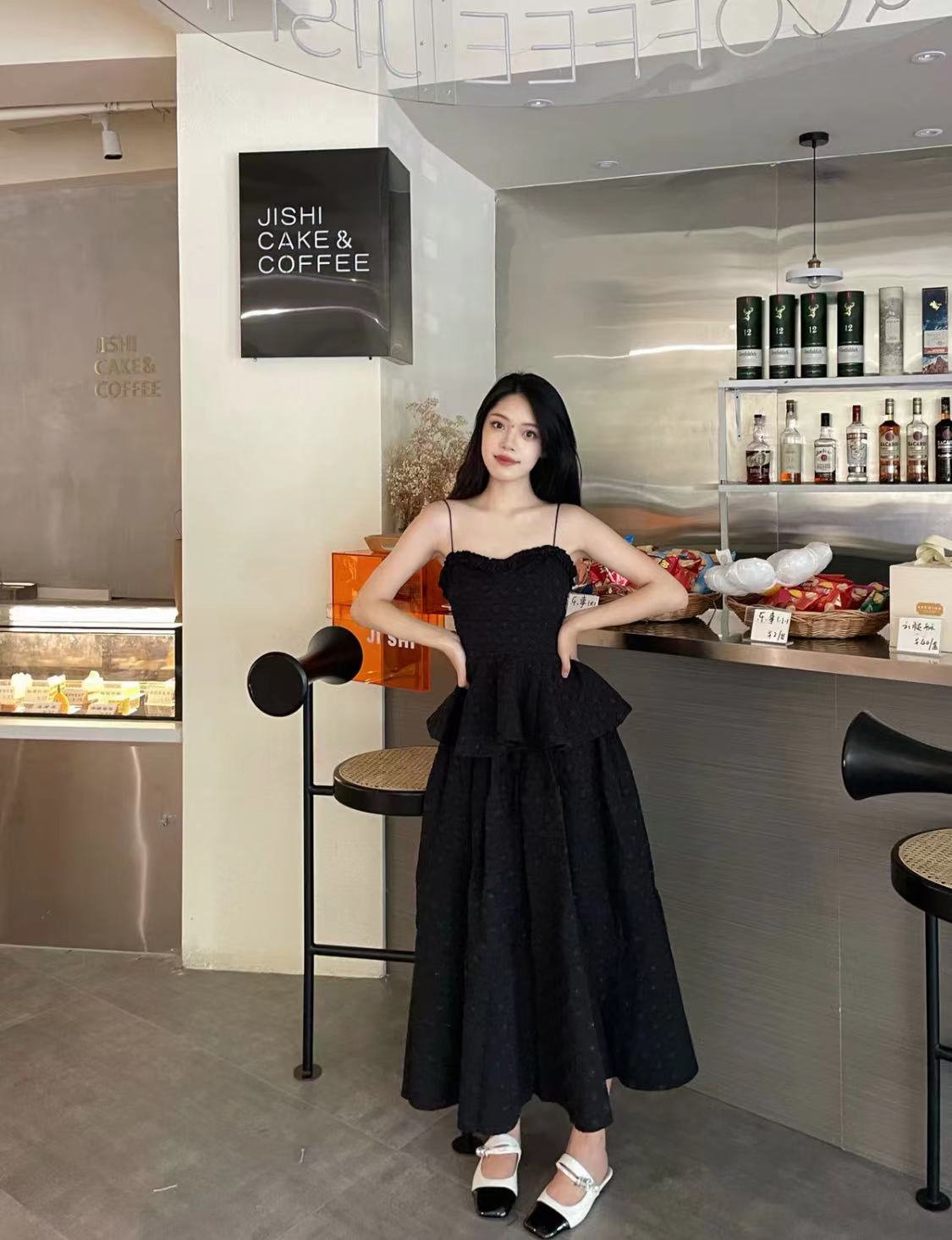 ¡Bendida tu elegancia interior con nuestro vestido de Peplum de elegancia noir! Con una falda larga, los tirantes agregan un toque de peculiaridad a su aspecto. Perfecto para un ambiente elegante pero juguetón. ¡Consigue el tuyo ahora!