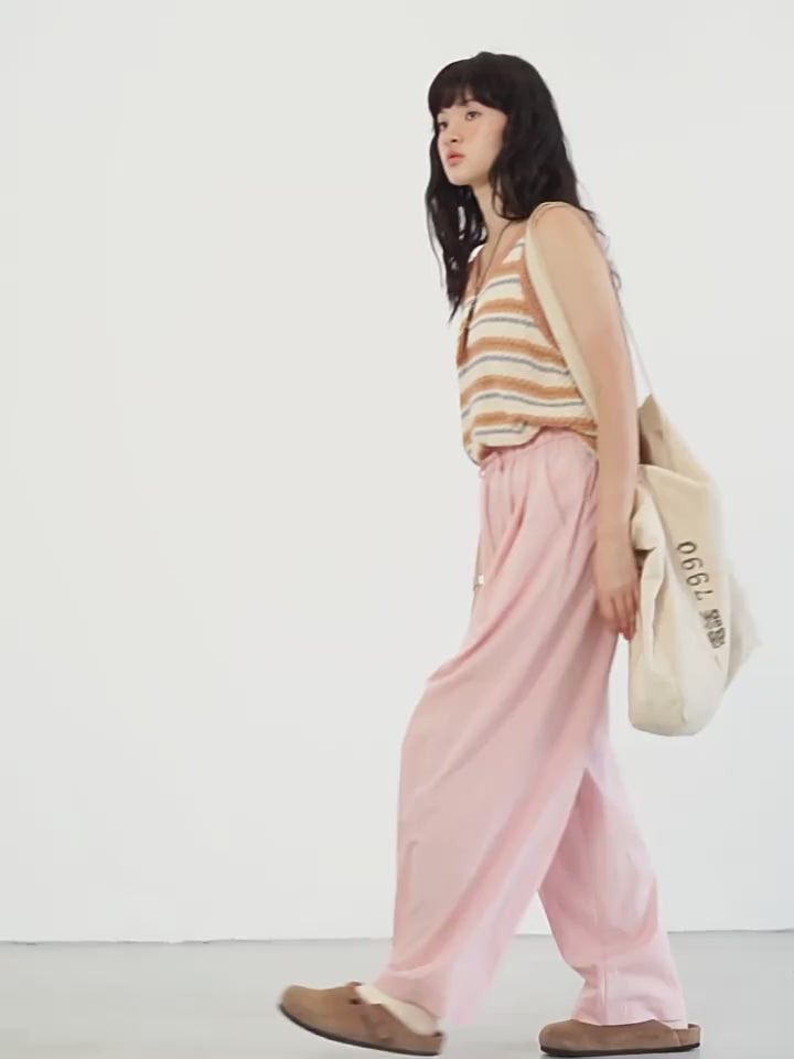 Estos pantalones cuentan con un ajuste informal y suelto que es versátil y de moda. La cintura elástica con cordón acomoda varios tipos de cuerpo, eliminando la incomodidad de una cintura apretada. La tela es cómoda y transpirable, con un efecto de enfriamiento inherente y una textura arrugada que se suma a su sensación de calidad.