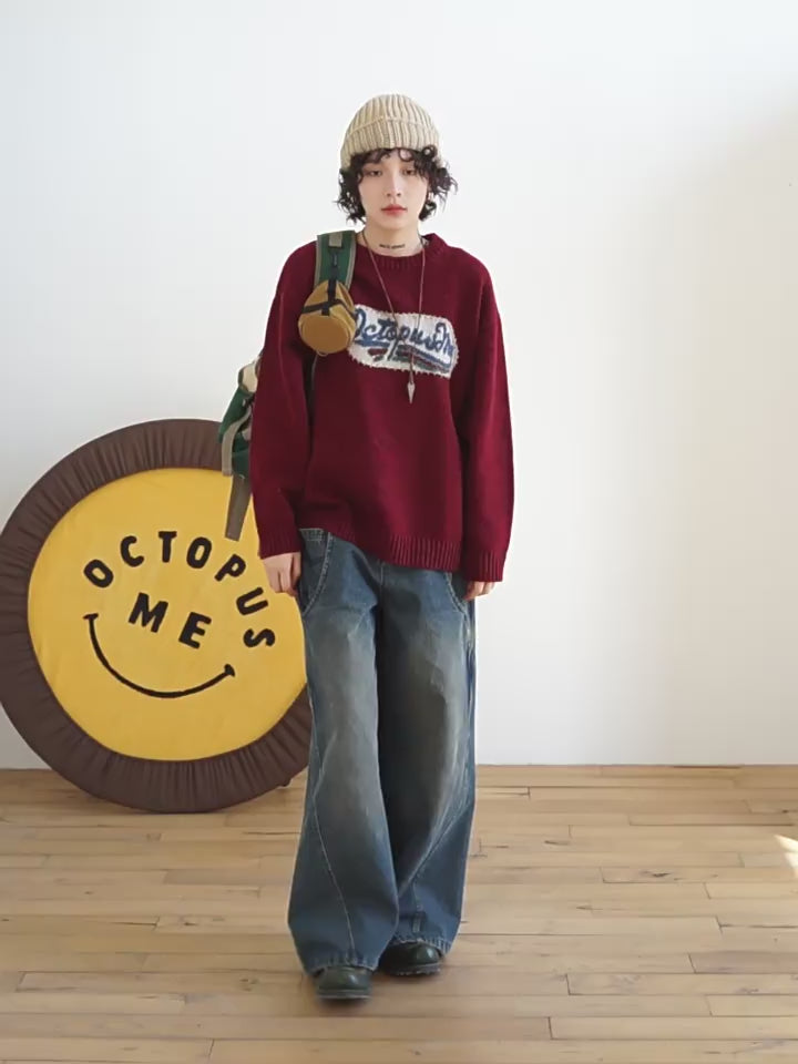 Esta prenda presenta un parche de punto hecho a mano con intrincada mano de obra, que muestra el logotipo de Octopus Family en un estilo deportivo vintage estadounidense. El diseño combina varias técnicas de tejer, que incluyen bordados de circuito abierto y costuras planas, creando un rico efecto visual con profundidad y textura.