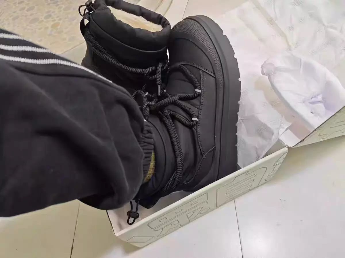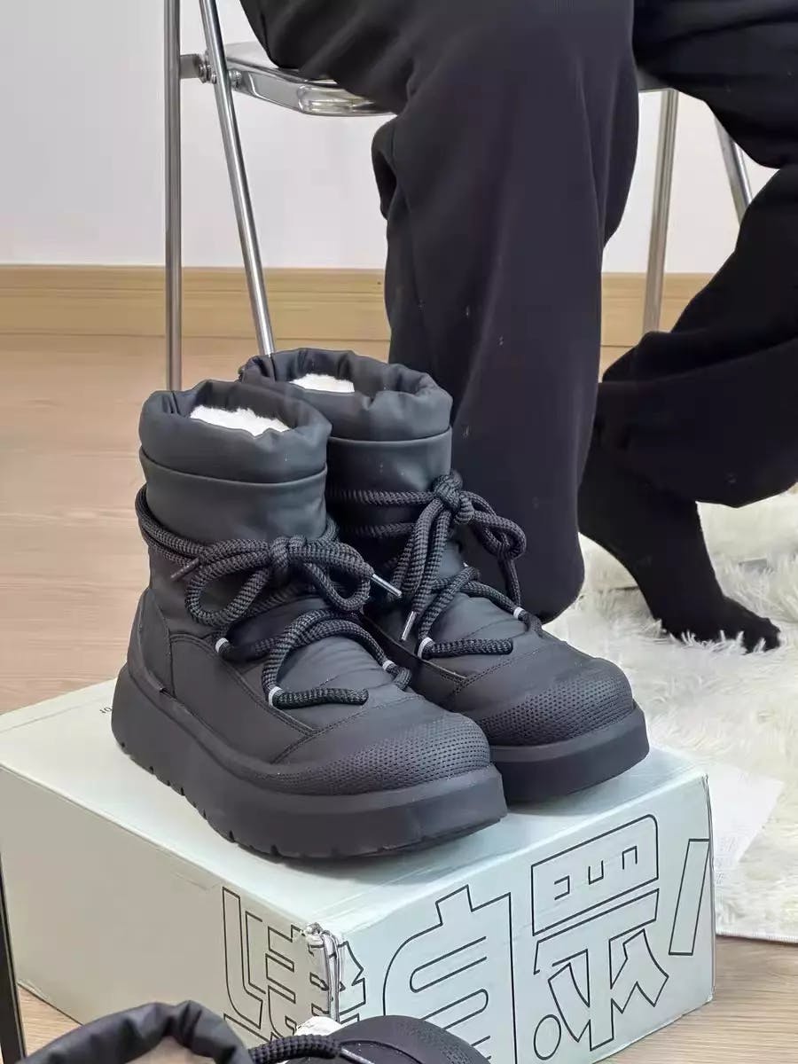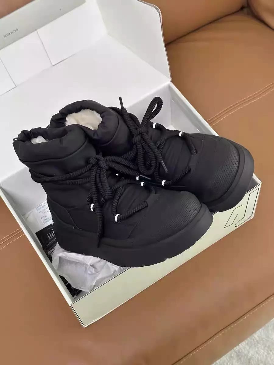 These boots blend utilitarian function with a bold, street-ready aesthetic. Designed for winter urban adventures, they feature a chunky, high-traction rubber sole and a round toe for comfort and stability. The upper is constructed from a mix of durable synthetic materials, while the interior is fully lined with plush, faux long wool for exceptional warmth. The short boot shaft (10–20cm) is padded and finished with an adjustable drawstring collar, ensuring a secure, insulated fit that keeps out the cold. Minimalist in appearance but substantial in build, these boots are ideal for those who want both practical protection and a statement look in harsh winter conditions.