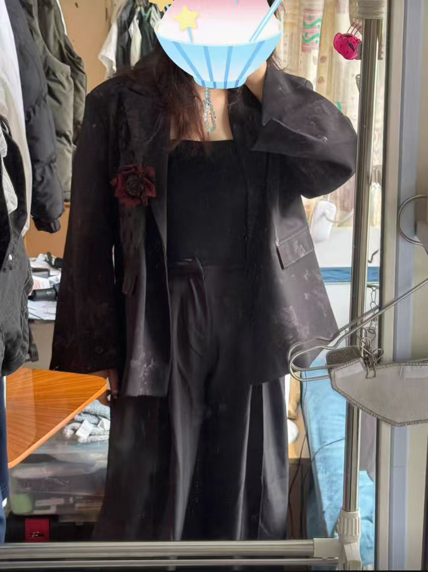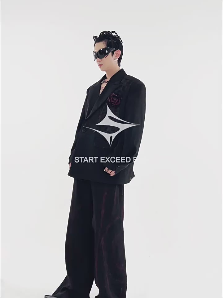 Black Floral Lapel Jacket and Wide Leg Pants Setup