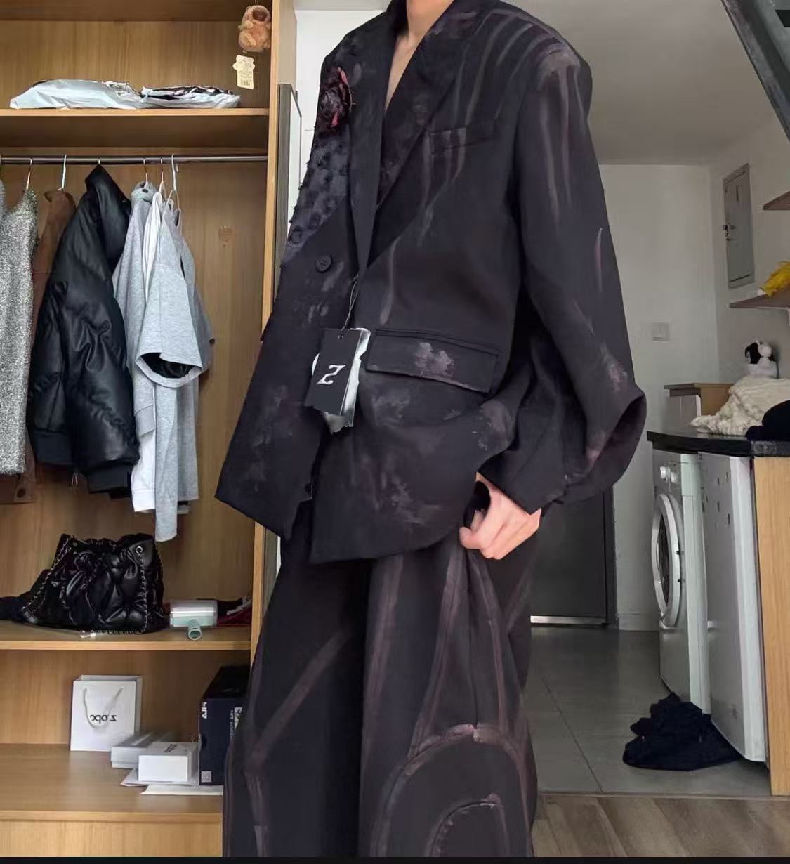 - Wearing: Jacket Size L, Pants Size S
