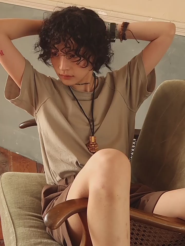 Embrassez la simplicité de l'été avec G0G0G0! Cette pièce présente une base de couleur unie améliorée avec des détails en couches pour la profondeur. L'encolure possède un col à double couches, tandis que les manches présentent un bord brut à trait extérieur non conventionnel. Les manches Raglan chevauchent le corps principal, créant un mélange harmonieux de détails subtils qui se traduisent par un design discret mais distinctif.