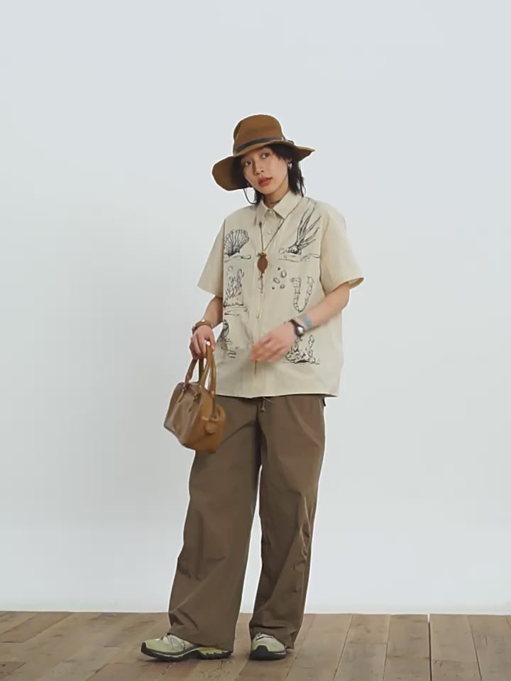 Cette élégante chemise à manches courtes propose une impression hawaïenne océanique dessinée à la main originale, concluant un équilibre parfait entre la polyvalence et le design. L'ajustement détendu le rend idéal pour les tenues décontractées. Le contraste frappant entre les couleurs d'impression et la base de tissu crée un look artistique unique qui est parfait pour les vêtements d'été.