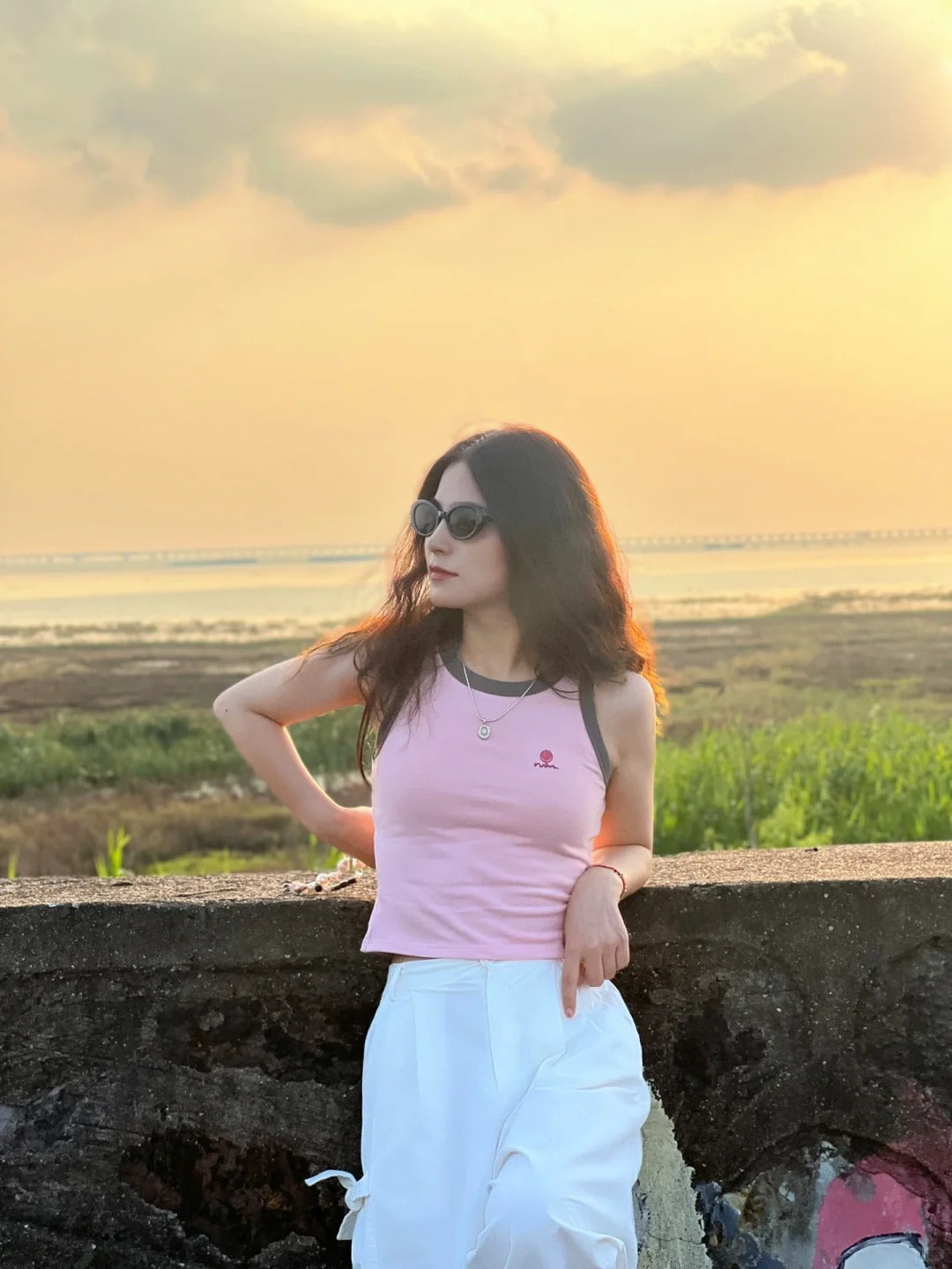 Ce débardeur de racers ajusté légèrement élastique et de couleurs contrastés est incroyablement minceur. Il divise parfaitement les proportions corporelles, offrant une coordination des couleurs d'été sans effort. Les couleurs de broderie assorties ajoutent une touche ludique. Disponible en quatre options de couleurs.