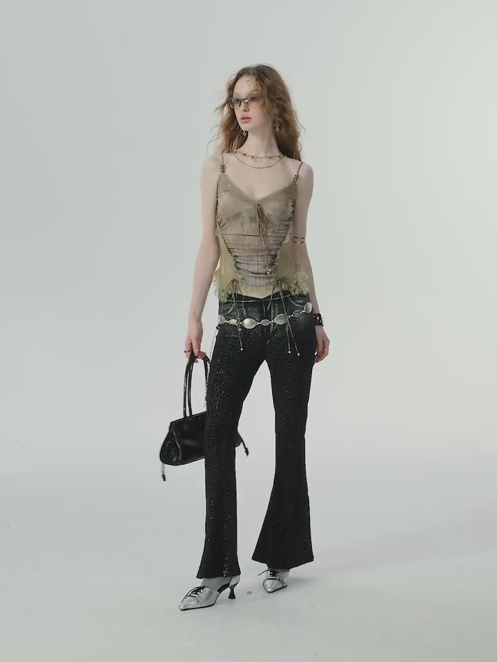 Ce vêtement présente des inserts en dentelle le long des coutures de princesse sur les panneaux avant et arrière. Cet élément de conception crée un contraste visuel qui améliore la silhouette du corps et ajoute un look riche et en couches à la pièce. Le placement stratégique de la dentelle non seulement flatte la figure mais contribue également à une apparence plus sophistiquée et multidimensionnelle.