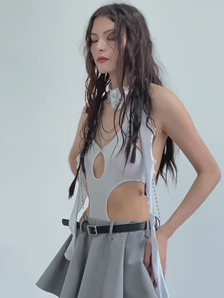 Gilet extensible métallique en argent - élégant et sensuel
