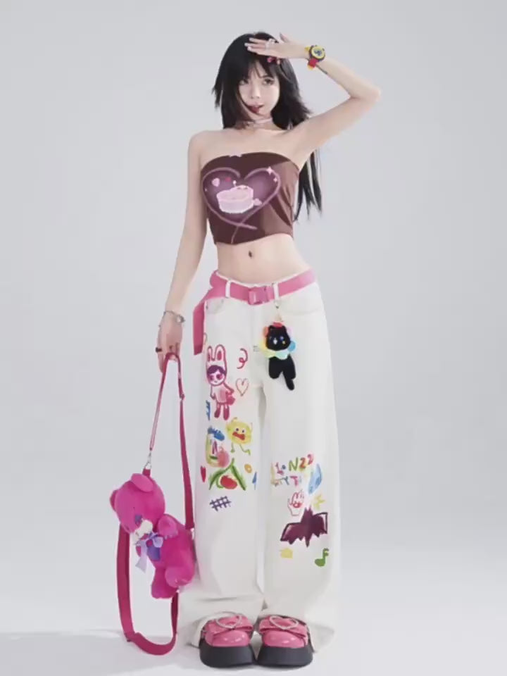 11SH97 Playful Graffiti Wide-Leg Jeans
