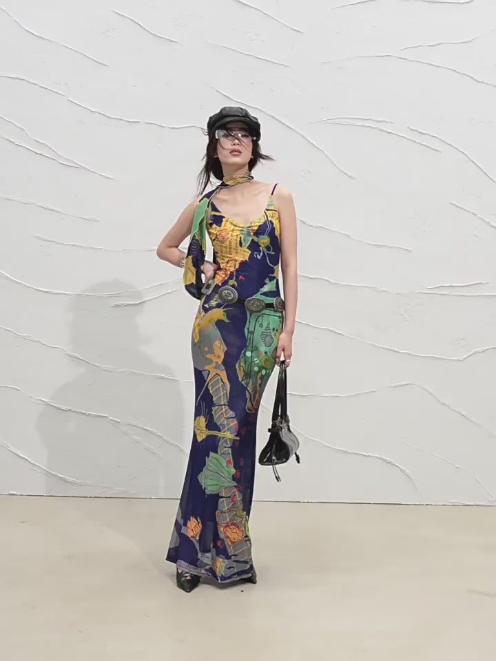 Autumn Flame Halter Maxi Dress