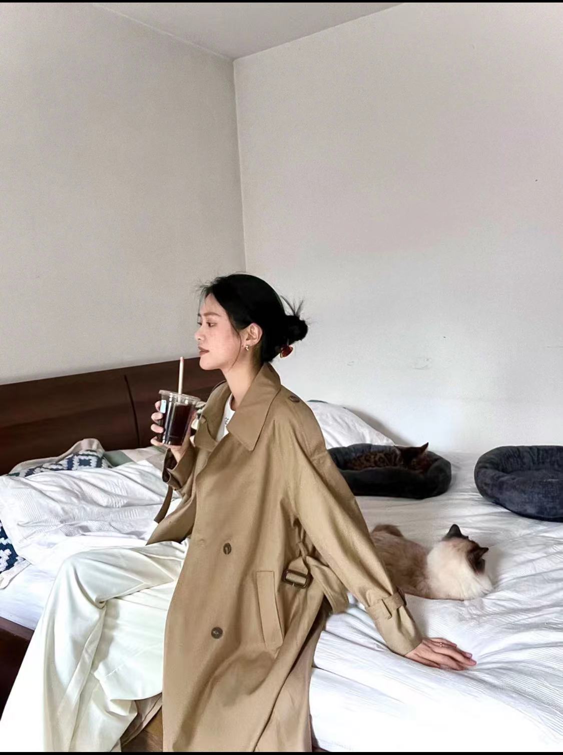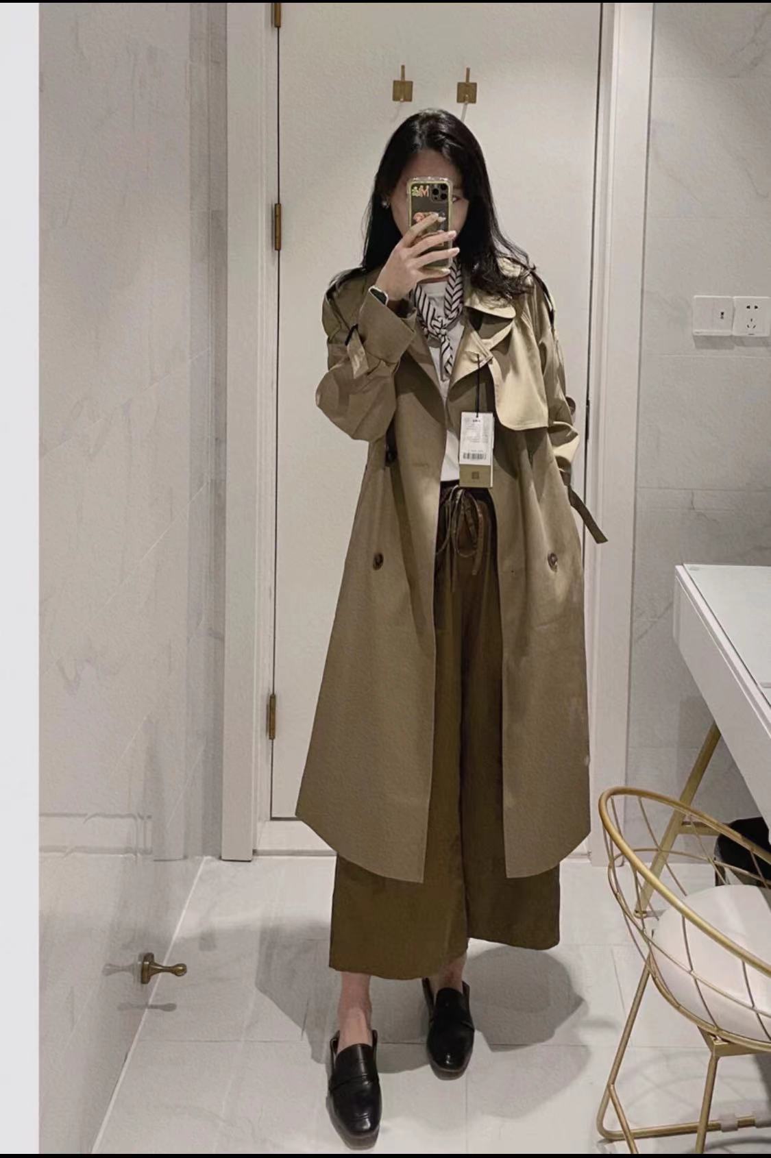 Introducing the New British Style Double-Breasted Trench Coat for petite women. This mid-length Melton coat features a loose fit, perfect for layering over your favorite outfits. The double-breasted design adds a classic touch, while the coat's overall style exudes an English elegance. Despite its loose fit, the coat is designed to flatter smaller frames without overwhelming them. Stay warm and stylish in the cooler months with this chic, versatile trench coat.