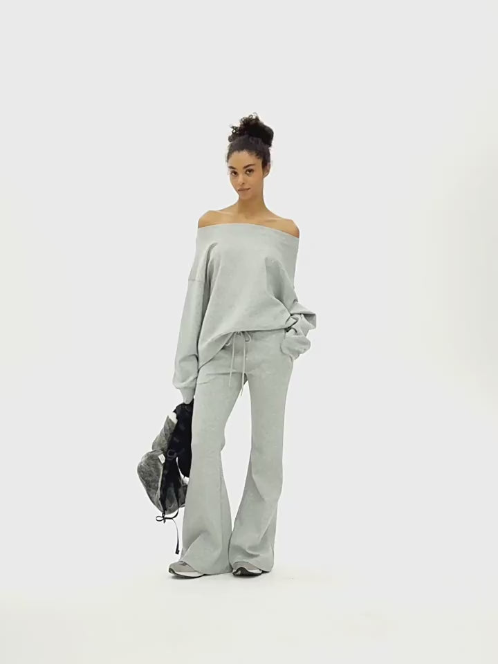 Off-The-Shoulder Sweatshirt And Slight Flare Casual Pants Set