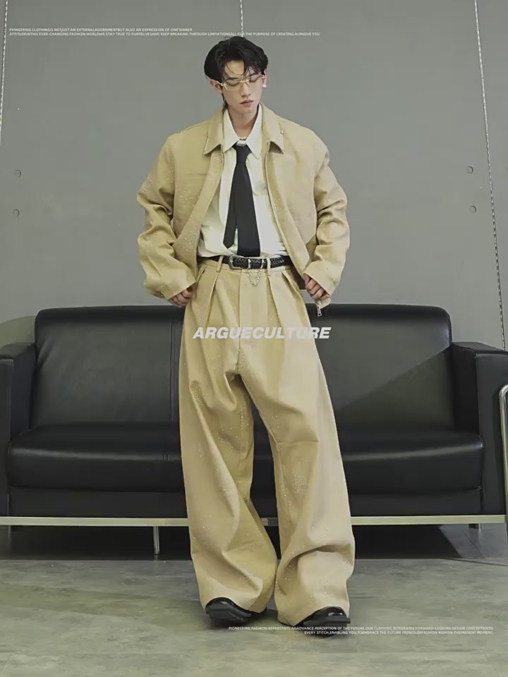 Oversized Bomber Jacket and Wide-Leg Trousers Setup