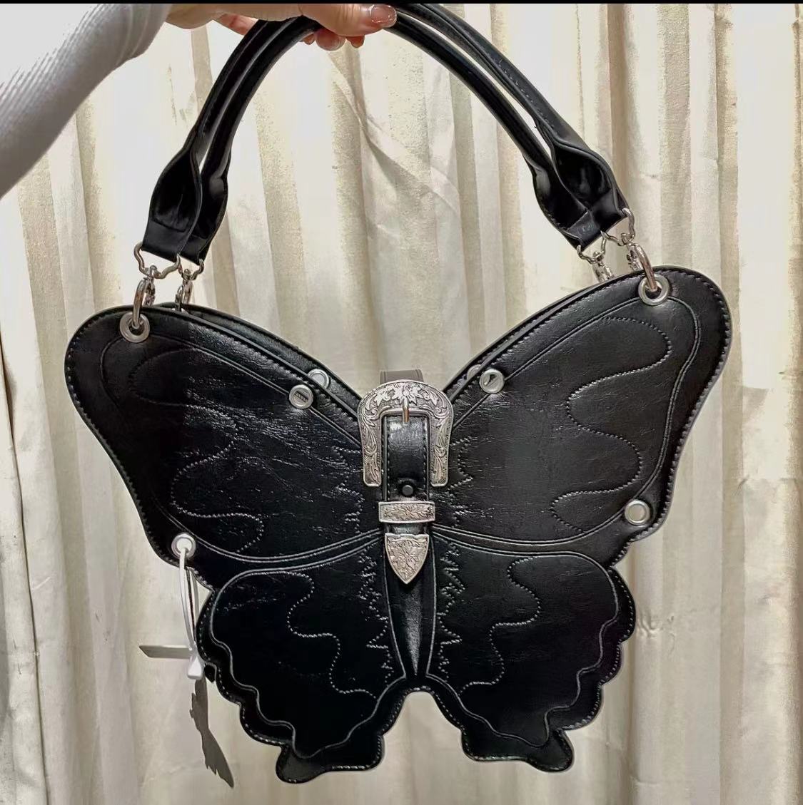 Unleash your edgy side with this 3D Punk Butterfly Shape Bag. Perfect for making a bold statement, it offers versatile single or double shoulder carry options.