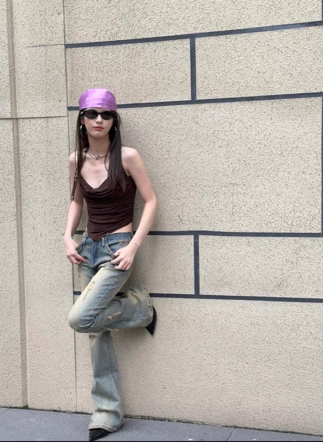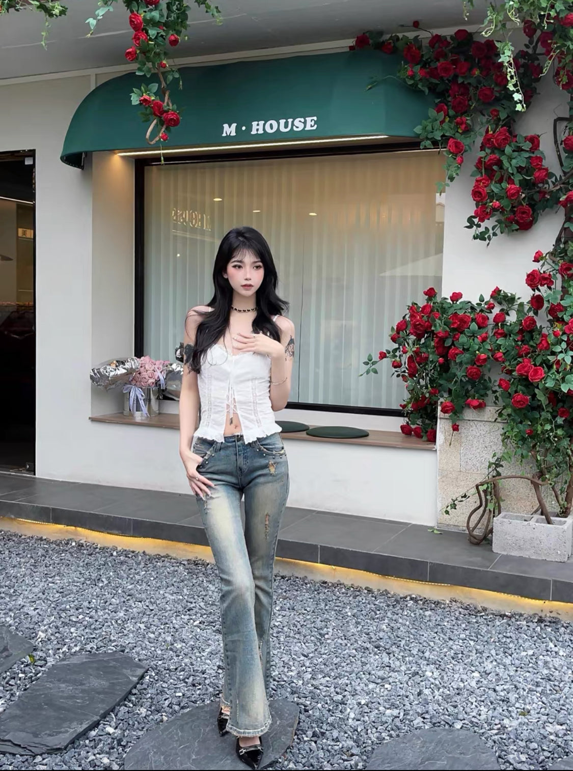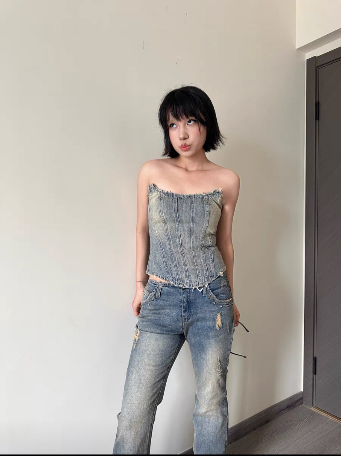 1진 데님 빈티지 워시드 스트레이트 레그 진