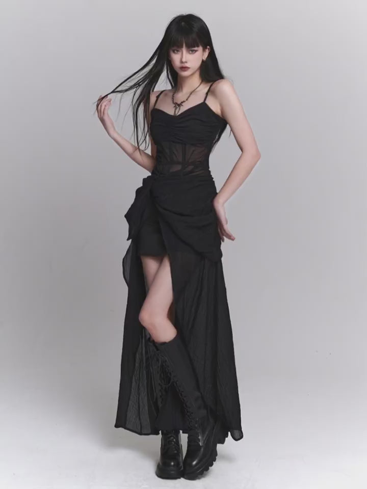 우아한 블랙 슬립 드레스