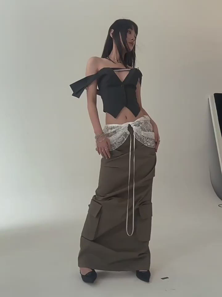 킹크 스트랩이 달린 비대칭 스트라이프 홀로우 조끼