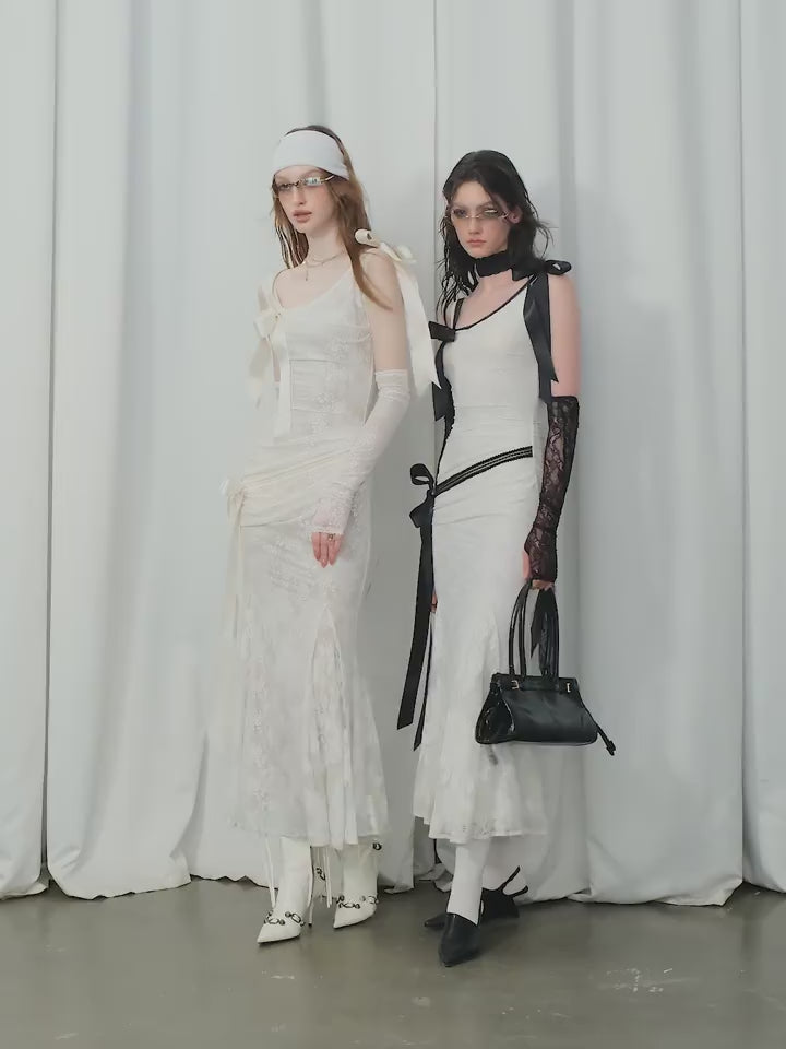 탈착식 리본 레이스 스플라이스 서스펜더 드레스