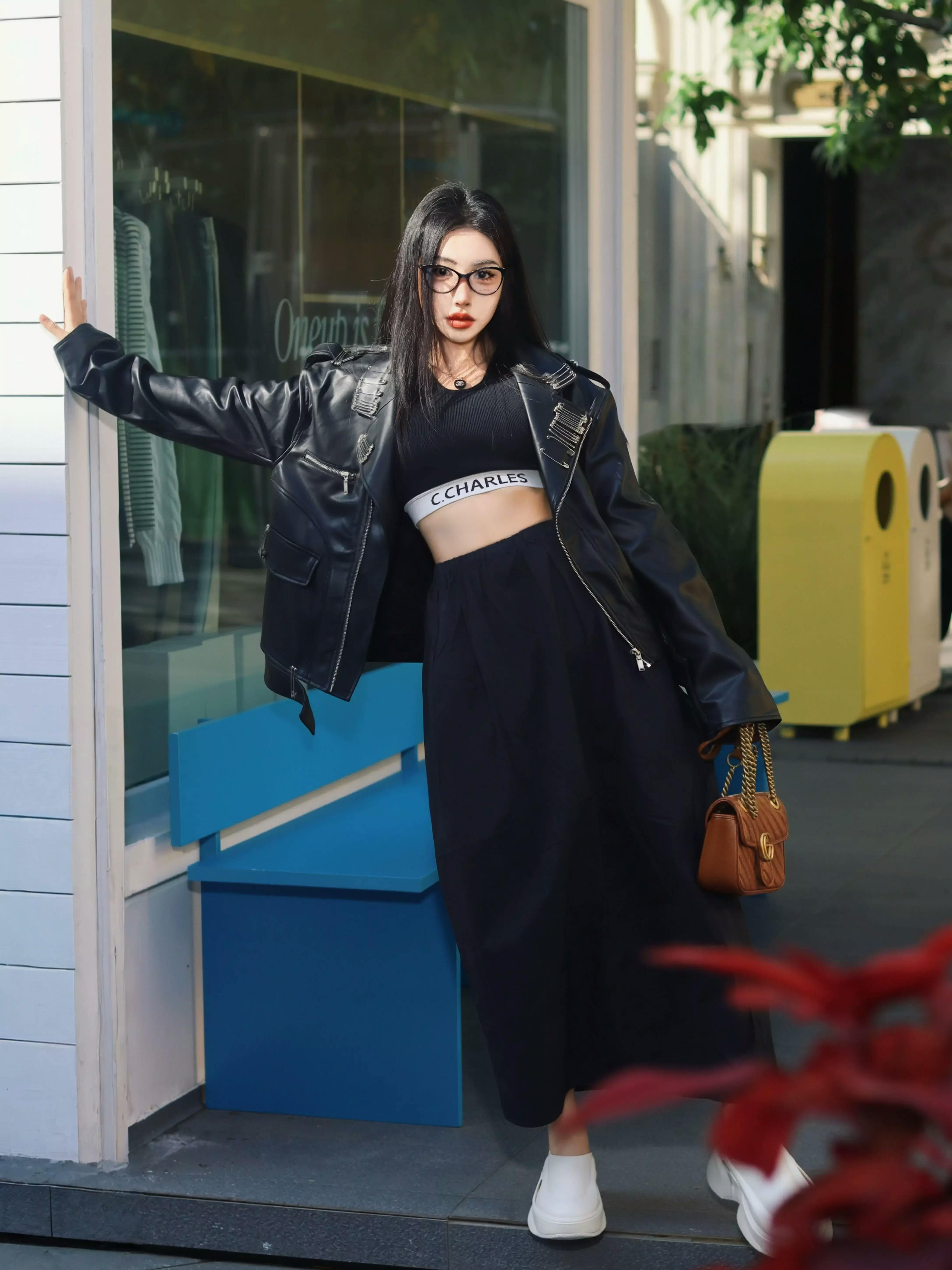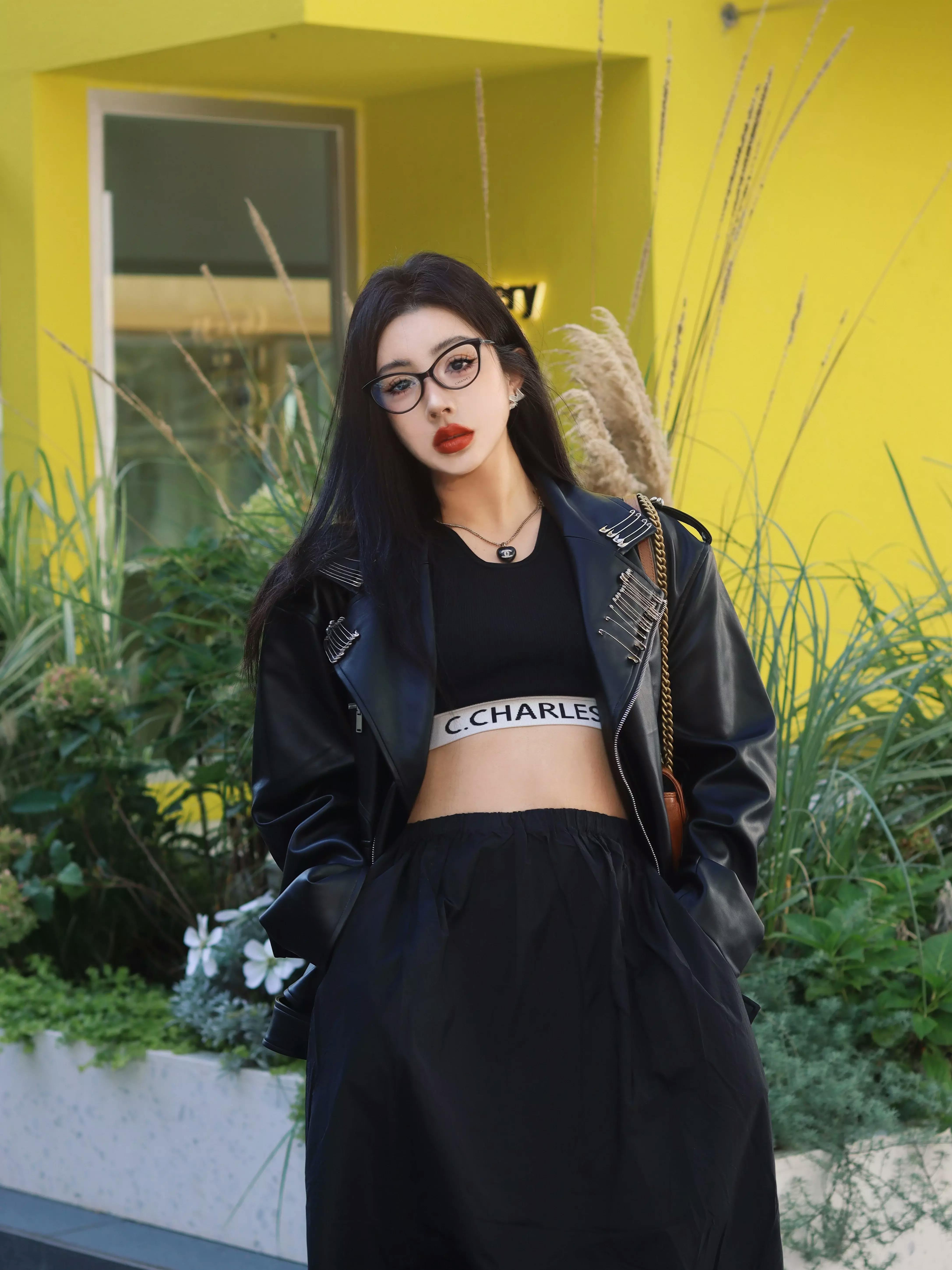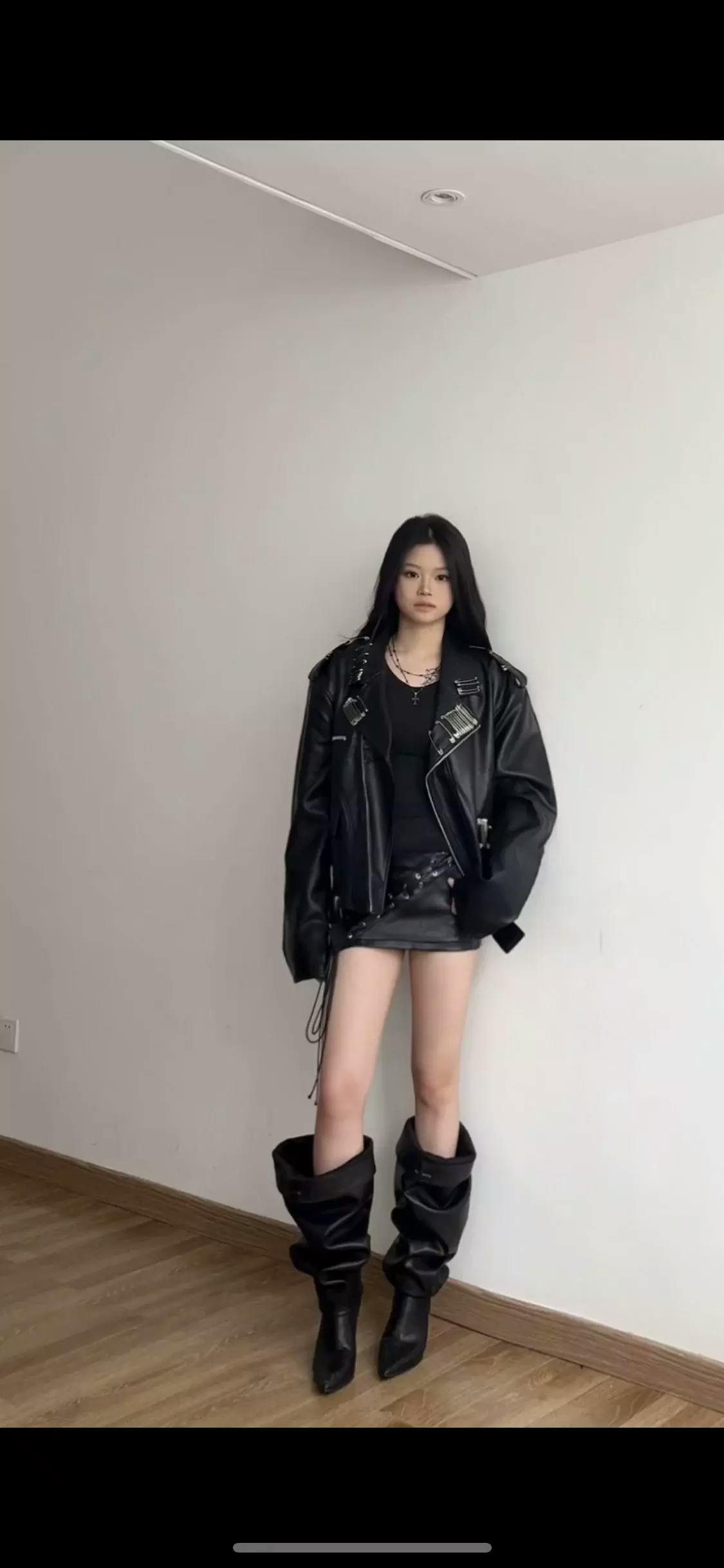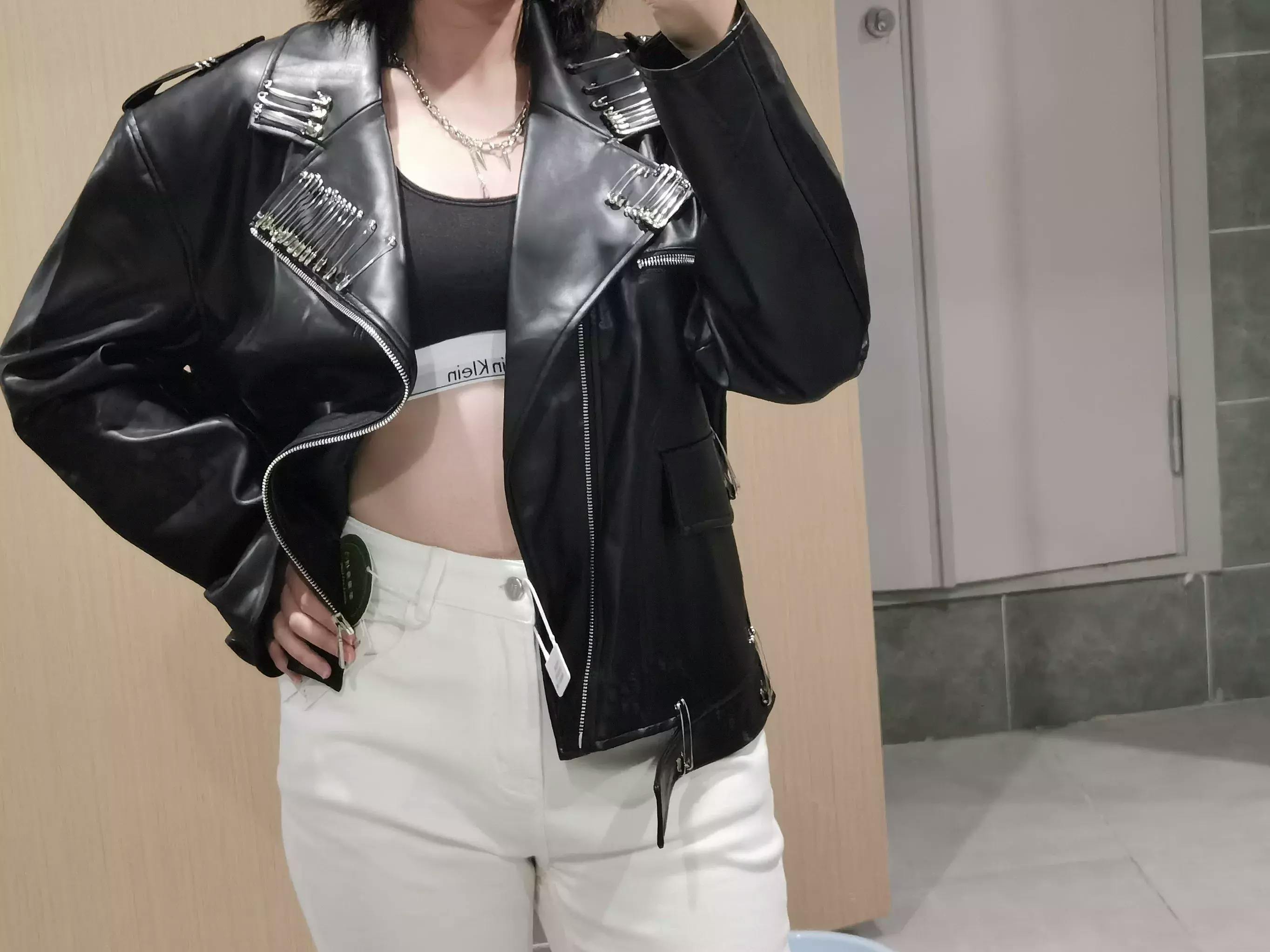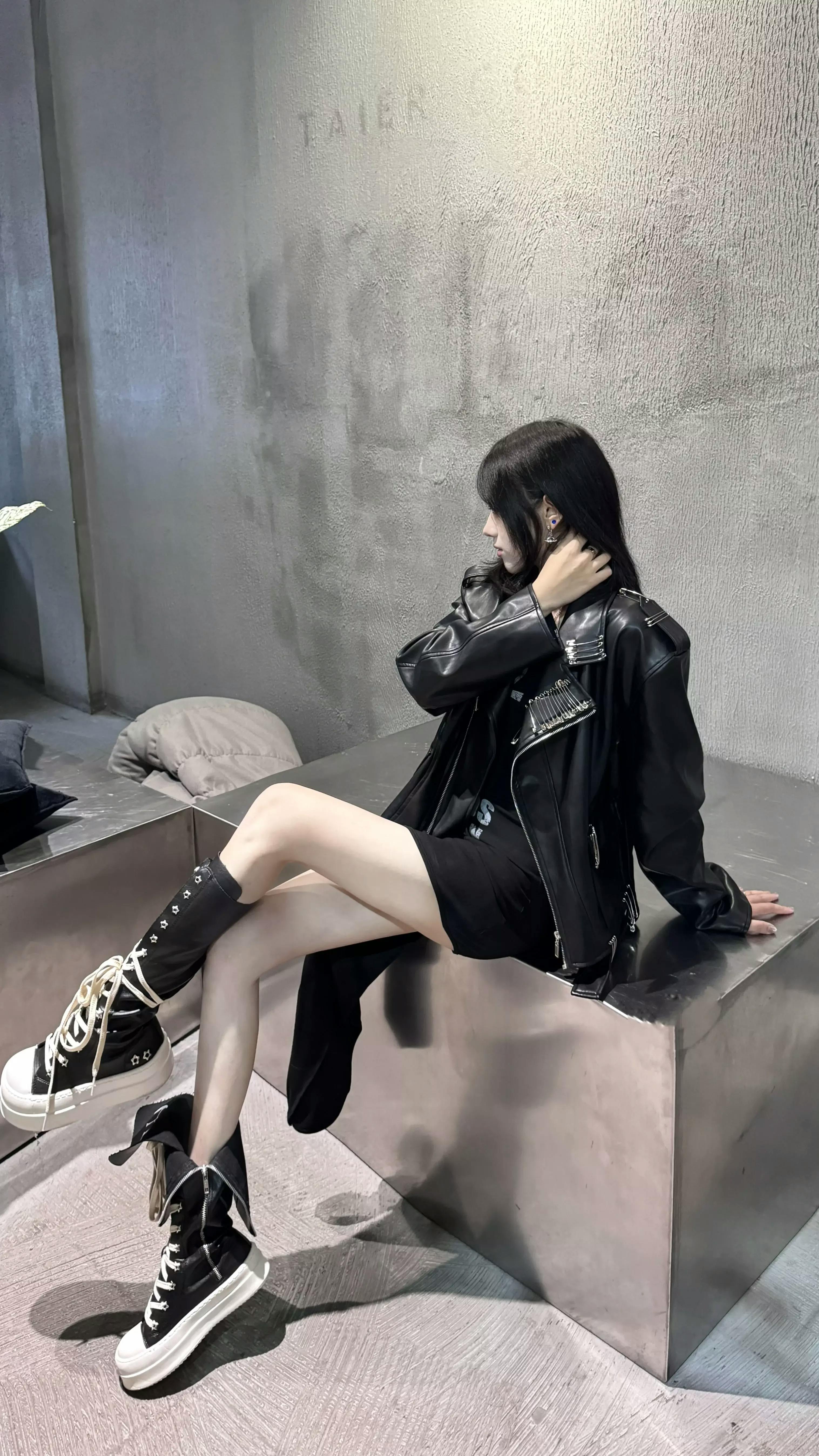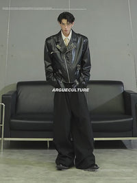 This statement biker jacket is crafted from PU fabric, replicating the refined texture and luster of genuine leather. The piece features striking asymmetric zippers and belted accents for a rebellious edge, while the back is finished with an intricate embroidered geisha motif for artistic flair. Special processing ensures the jacket is both wear-resistant and easy to maintain, providing good breathability and comfort for everyday wear.