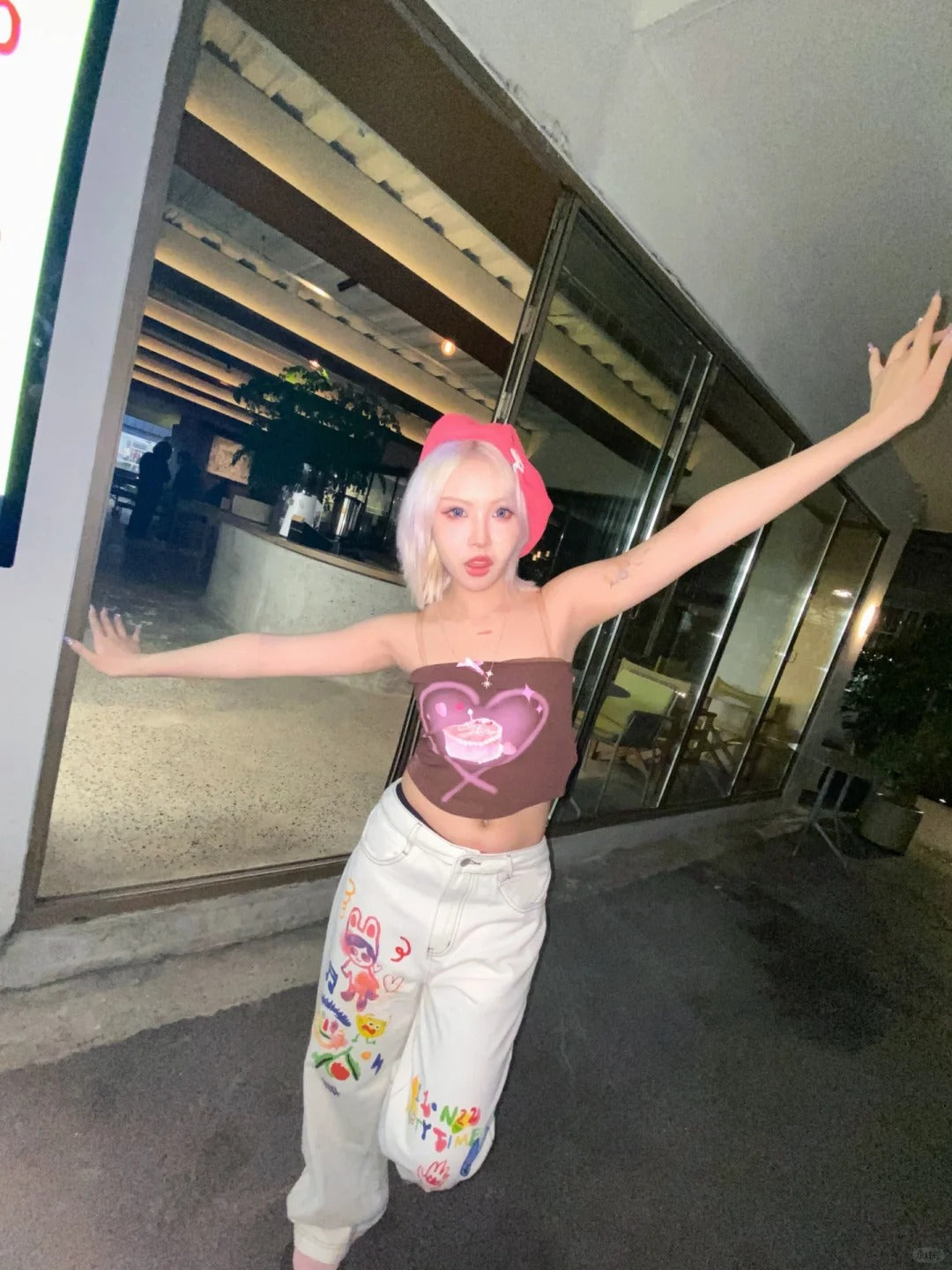 11SH97 Playful Graffiti Wide-Leg Jeans