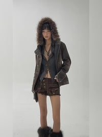 This dark denim military-style jacket combines rugged durability with cozy comfort, featuring a soft fur trim that adds warmth and style. Its structured design offers a flattering fit while providing protection against chilly weather. Perfect for layering, this jacket supports your everyday adventures with both function and fashion.