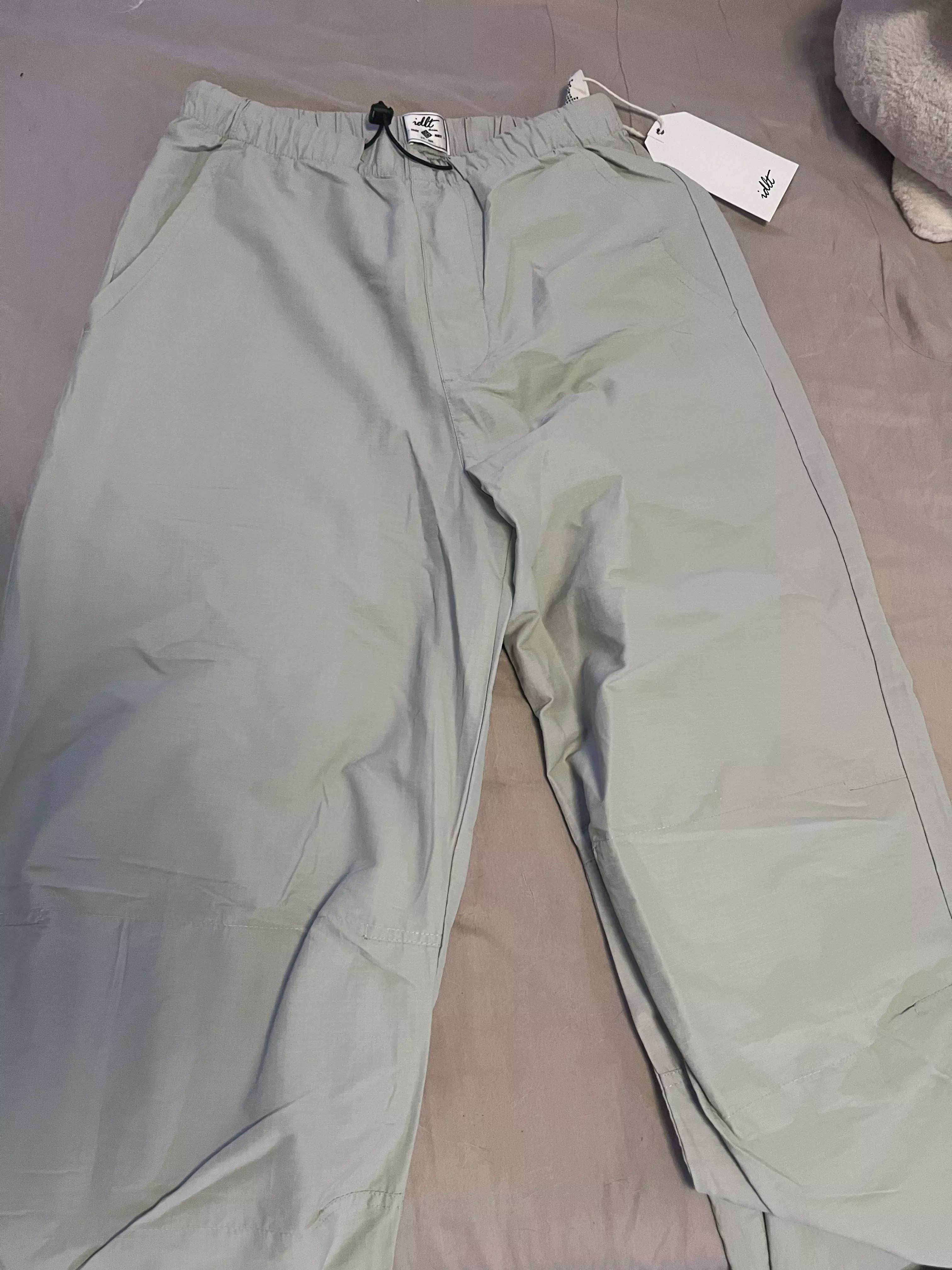Discover the IDLT Durable Nylon Pants from the Autumn/Winter '25 collection. These versatile pants are available in black, light gray, khaki, and green. Made from a blend of 68% cotton and 32% polyamide, they offer an oversized fit suitable for both men and women. Easy to care for with machine or hand wash under 40°C, no bleach, and low-temperature ironing. Lay flat to dry.