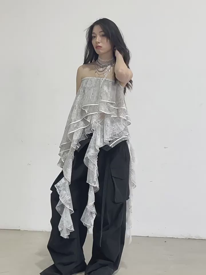 Lace Irregular Ruffle Edge Tube Top Skirt