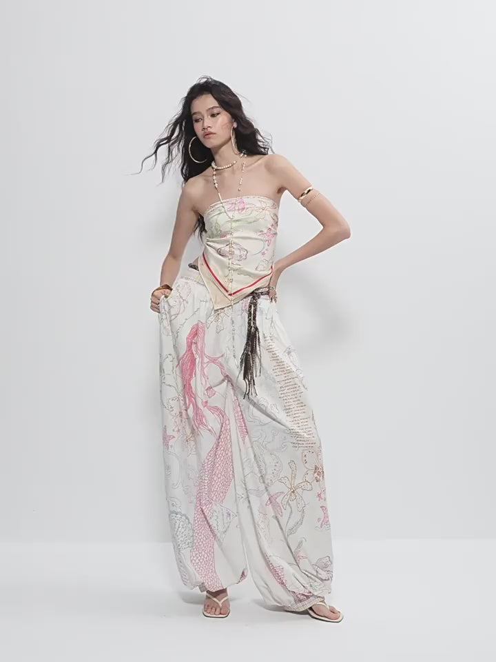 The segmented elastic waistband combines sportiness with a high level of practical aesthetic appeal. The checkered color - blocking design adds a vintage touch. The designer's original hand - drawn design takes the mermaid's shape as the theme and the plant - based ocean as the background, depicting a scene of natural growth.