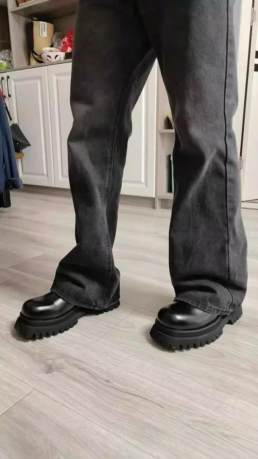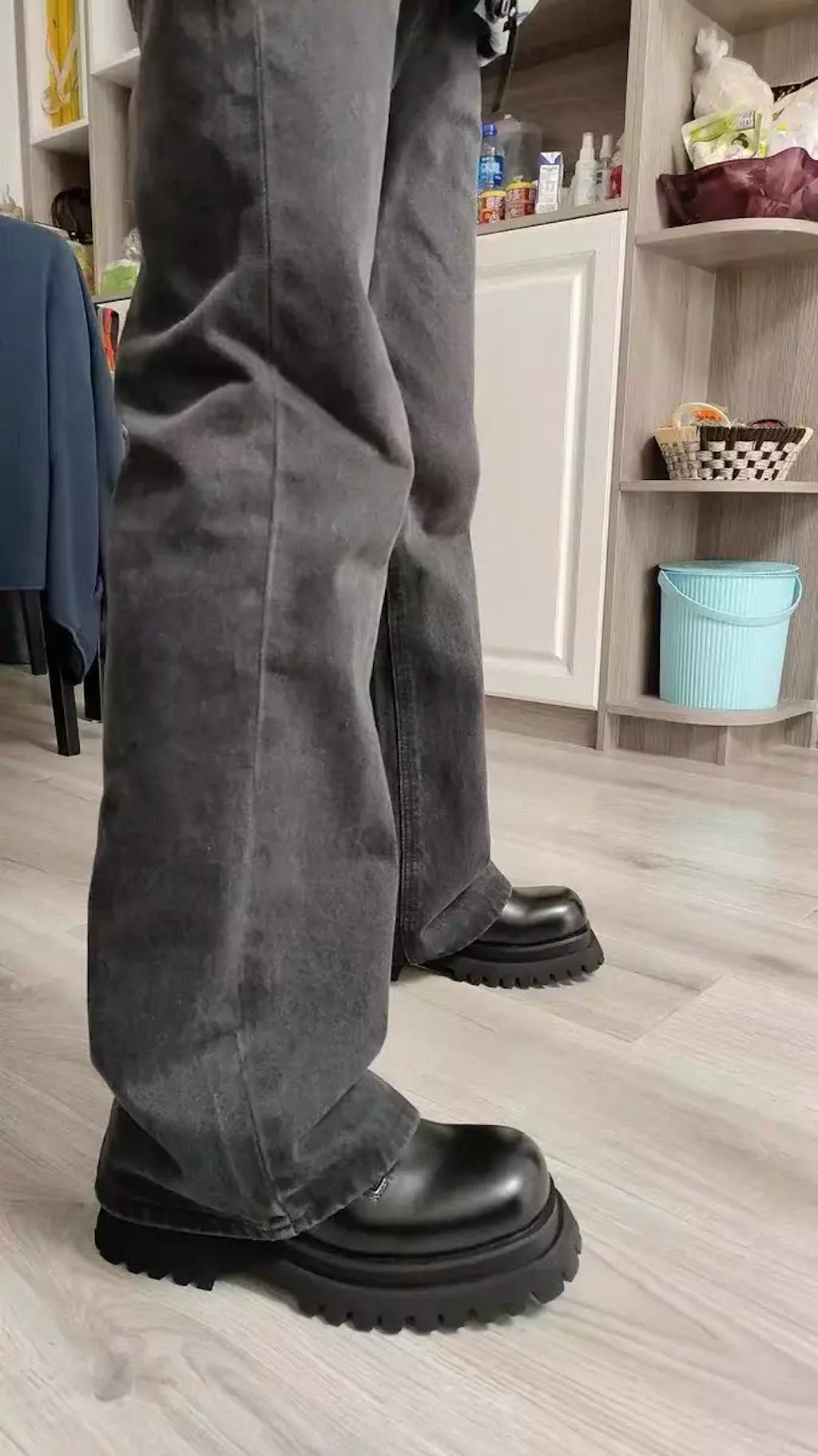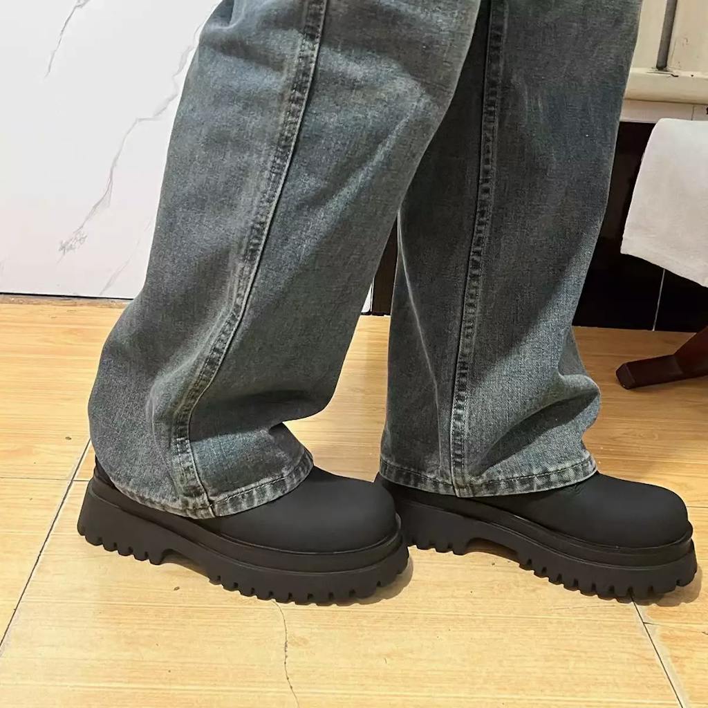 These shoes are a bold, modern take on classic British-style casual leather shoes, designed to stand out with a chunky, thick-soled silhouette. The upper is made from synthetic leathe, providing a sleek, contemporary look, while the inside features a comfortable PU lining and insole. With a round toe, lace-up closure, and a high-traction rubber sole, these shoes offer both style and a noticeable height boost. Perfect for youth, they’re suitable for spring and autumn daily wear and are available in matte or glossy black finishes.