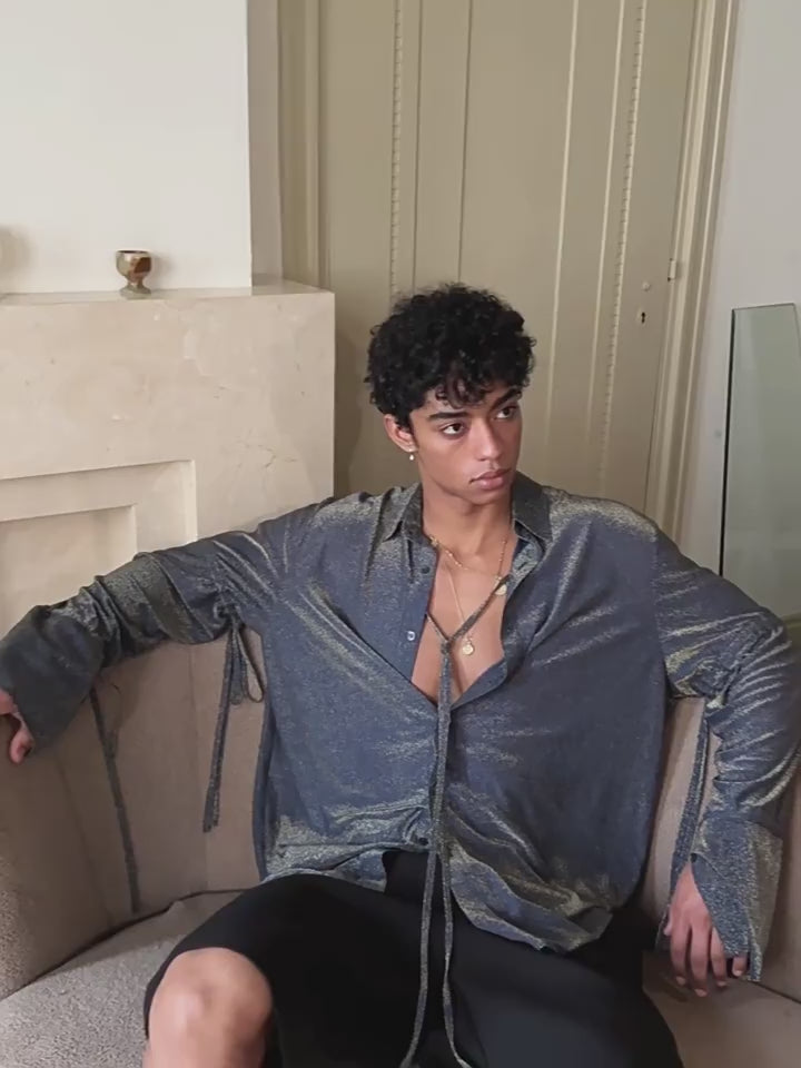 The sleeves have a unique tie design that's eye-catching, with adjustable drawstrings at the cuffs allowing for various styling options. The loose fit is versatile and easy to wear. It pairs well with jeans for a sexy, fashionable look, or with dress pants or skirts for a more elegant, sophisticated appearance.